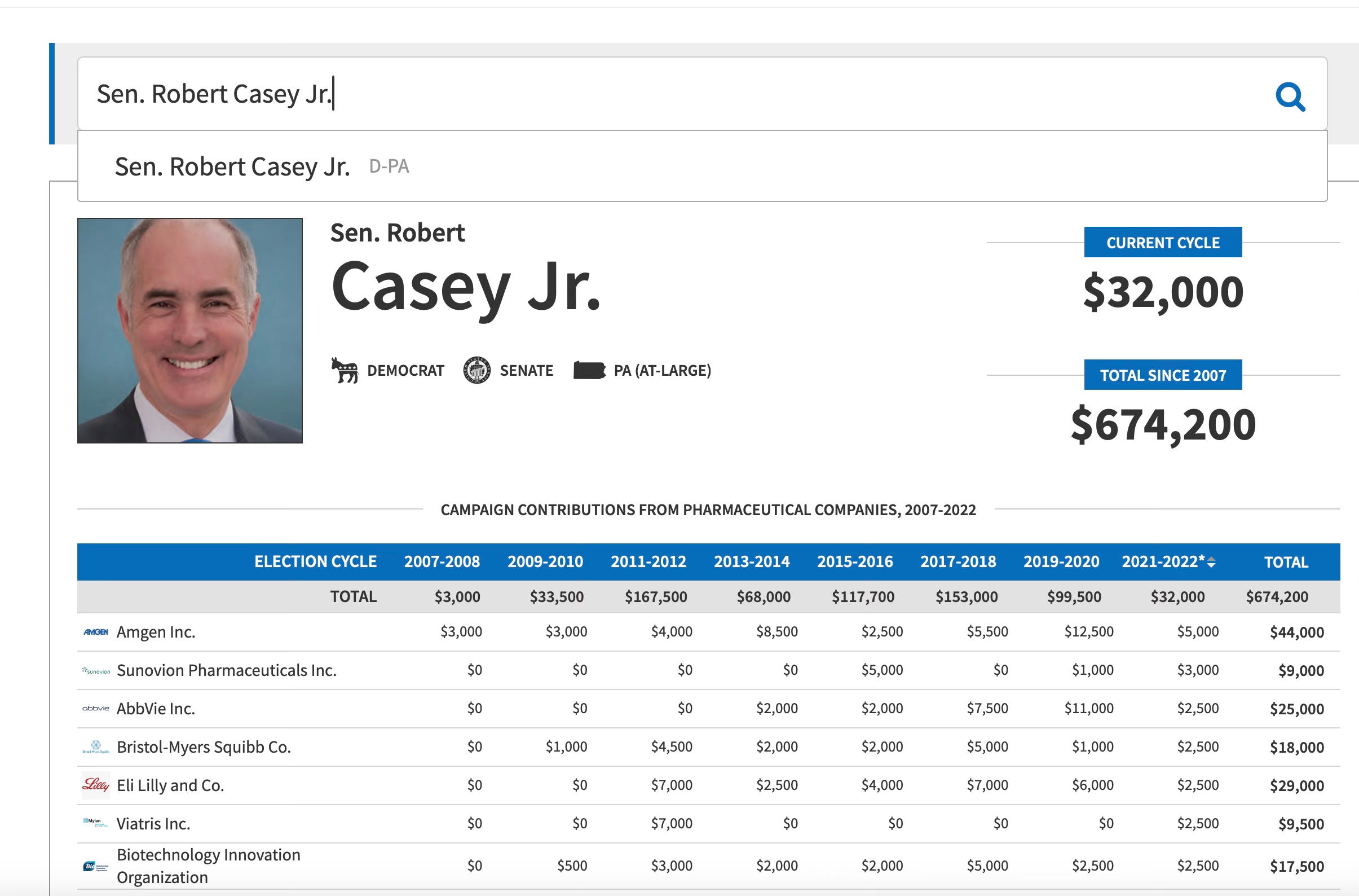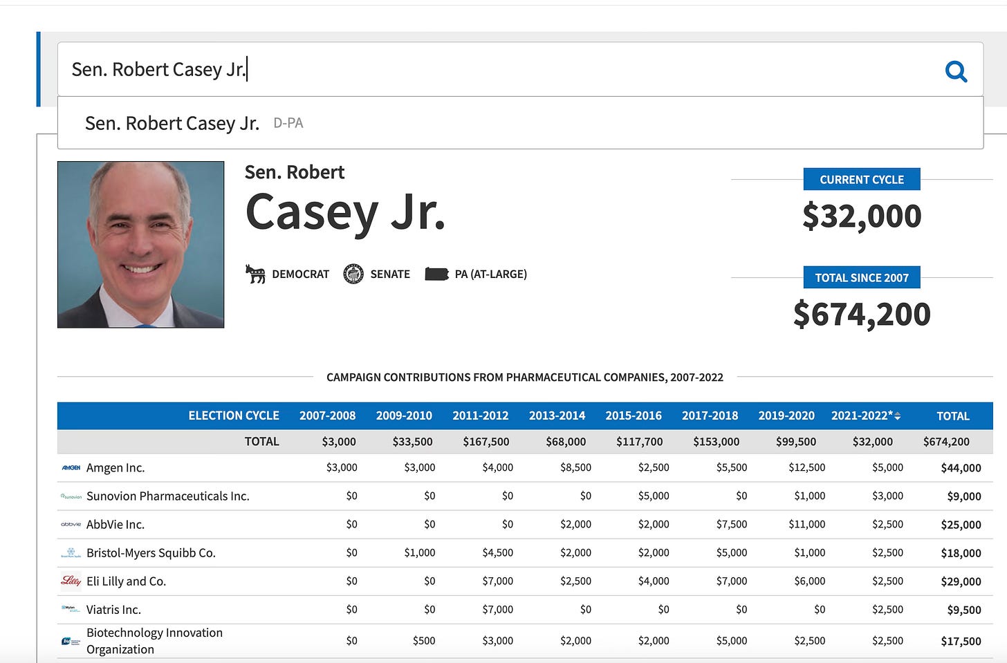 Bob Casey Touts Tax-Payer Funds for Pharma Marketing