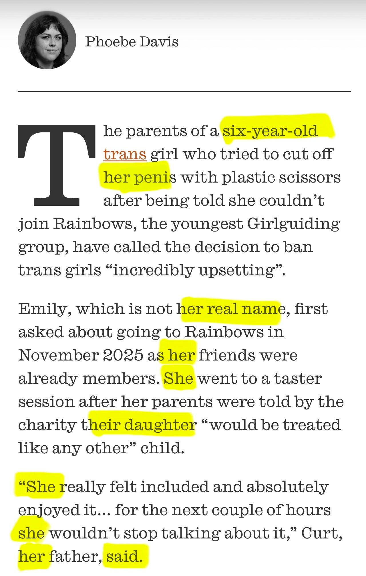 That is where the adult responsibility lies. Not with affirming a six-year-old child's gender identity.