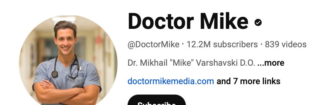 Dr. Mike Varshavski, a physician with over 25,000,000 subscribers across his platforms, dropped a Youtube interview with a WPATH physician yesterday. While the amiable Dr. Mike gently pushed back a few times, the interview mostly celebrated transitioning. There was no mention of the WPATH Files, The Cass Review, or the countries that have banned and/or moved away from the affirmation model.