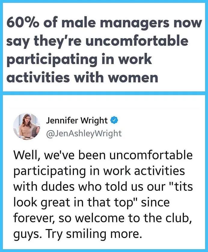 Women’s eNews is yet another former women’s org who has been captured. So Your Author was surprised to see this article called My Son is Pregnant, but his Wife had a Miscarriage. The author quite correctly decries how women are blamed for everything that goes wrong in a pregnancy while their male partners are congratulated when things go right. The author misses the irony when she writes