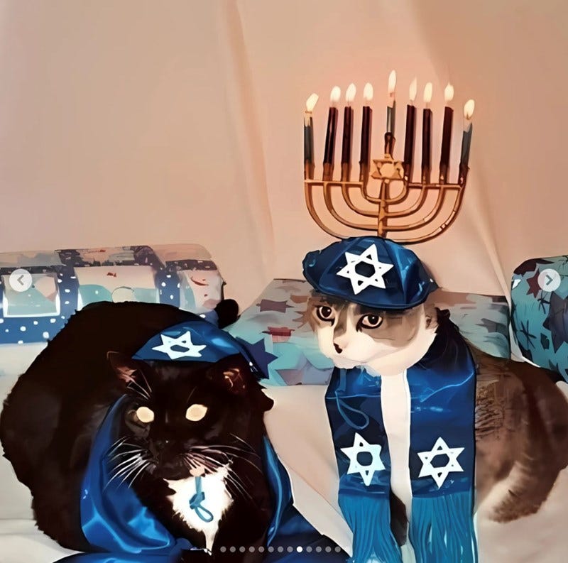 The first night of Hanukkah began December 14 at sundown. Happy Hanukkah to everybody who celebrates! Actually, Happy Catnukkah! Here are pictures of kittehs celebrating the holiday alongside their humans. More cute pics are here.