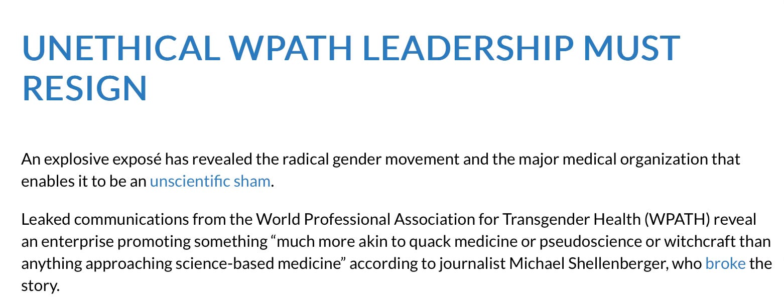 The New Tolerance Campaign has a simple online tool in which you can email WPATH and tell them you know about the WPATH files and that their leadership should resign. The group knows its days are numbered (fingers crossed) and has been scrubbing its website of incriminating text. But the internet never forgets, and we’d like you to tell them that you won’t either.