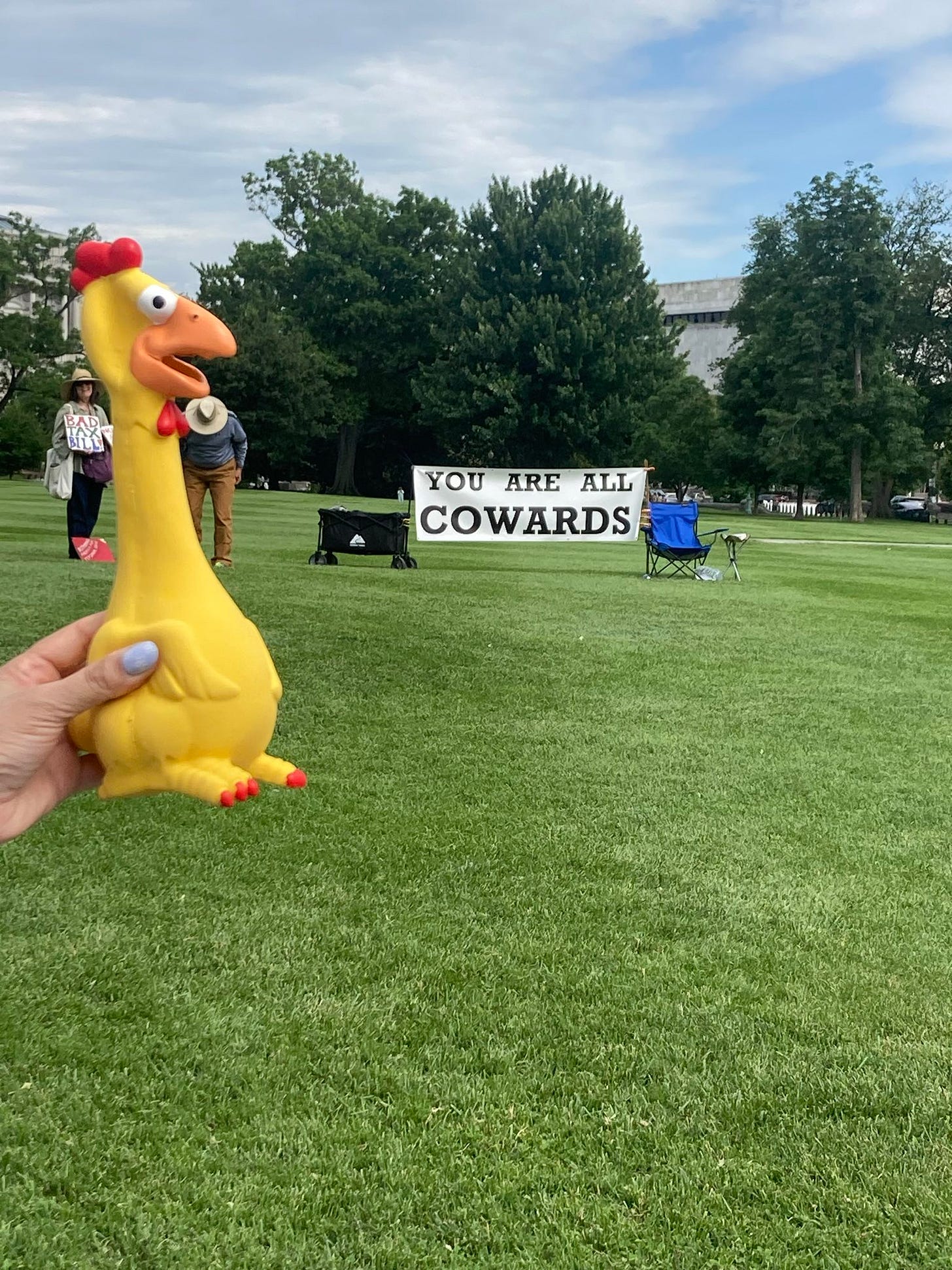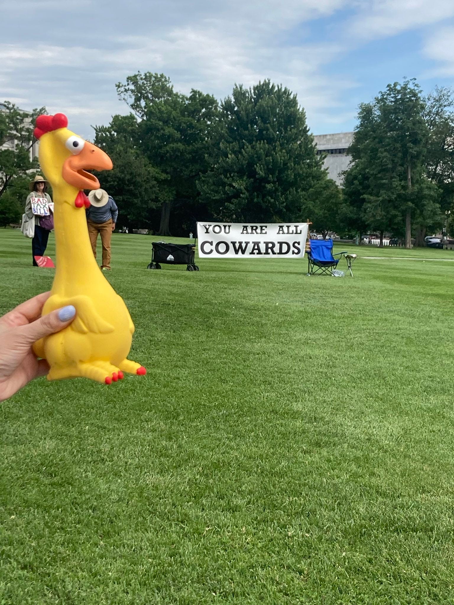 Afterwards, all of us met on the Capitol lawn to debrief and make this video chickening Senator Fetterman. Again, not all of our group could appear in our video.