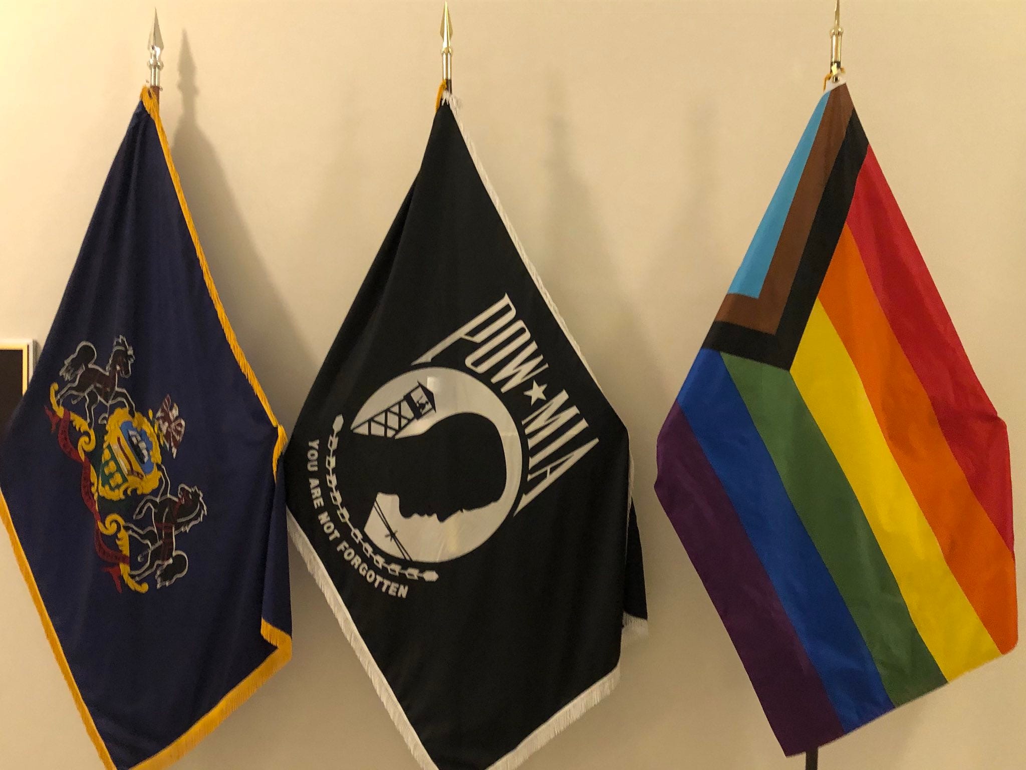 Here are the flags outside Senator Fetterman’s office. Many members of Congress display flags for various causes, especially POW-MIA. Senator Fetterman and several others also have the eyesore version of the Pride flag.